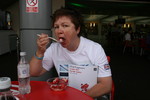 short queue and waited patiently to collect the tickets. As is her way she chatted up some Aussie and