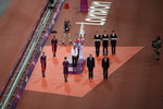 most of the long jump. Mo Farah then entered the arena for what was to be an