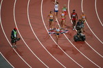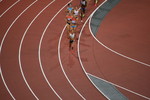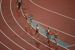 the stadium. The whole group of athletes in the heptathlon do a lap of honour